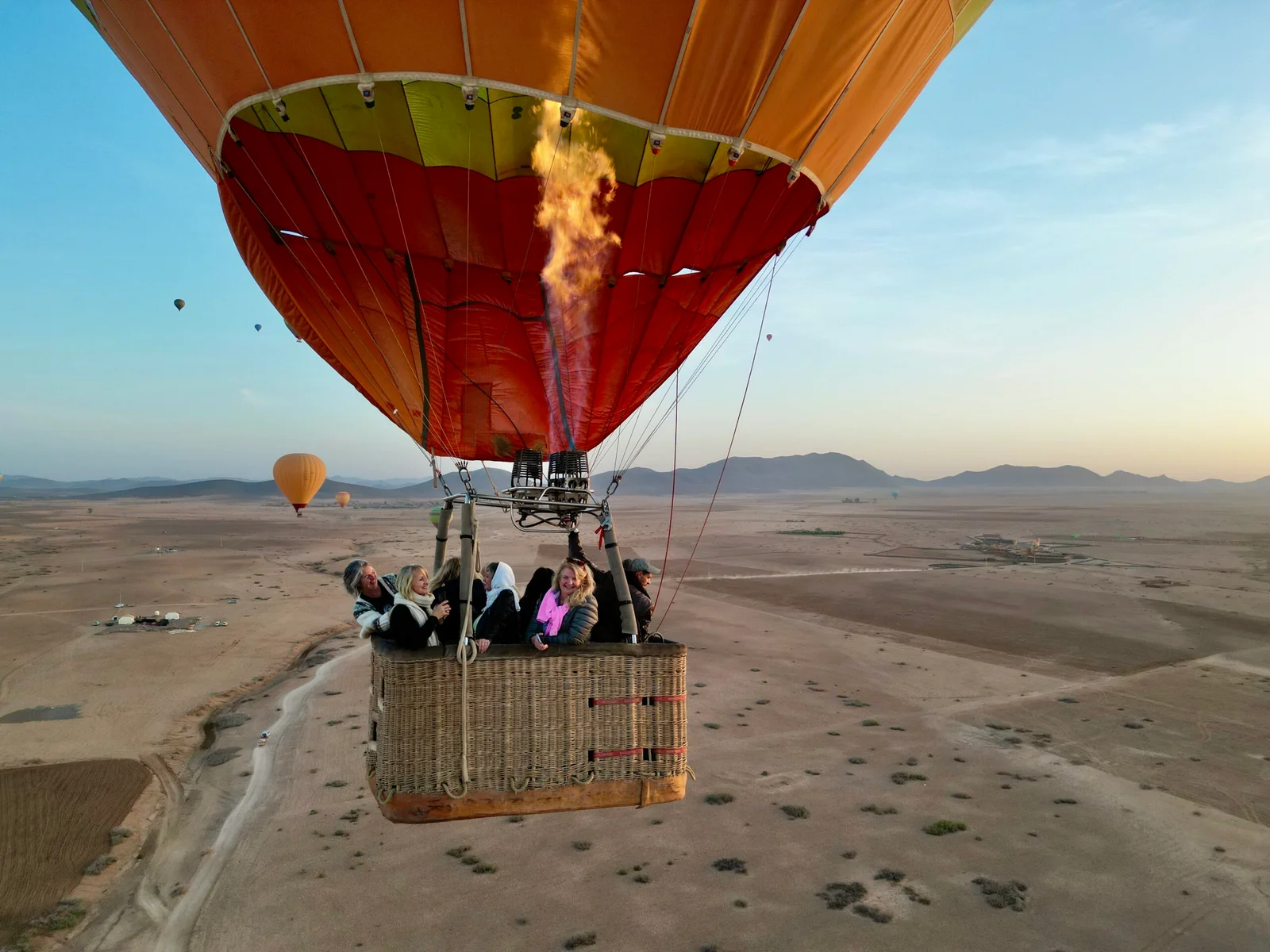 Experience the magic of Marrakech from the sky on an unforgettable sunrise hot air balloon flight. Drift peacefully above the desert landscapes, palm groves, traditional Berber villages, and the majestic Atlas Mountains as the first light of day paints the horizon in golden colors. This early-morning adventure combines breathtaking panoramic views, authentic Moroccan hospitality, and a smooth, safe flight with an experienced pilot, making it one of the most memorable activities to enjoy during your stay in Morocco.